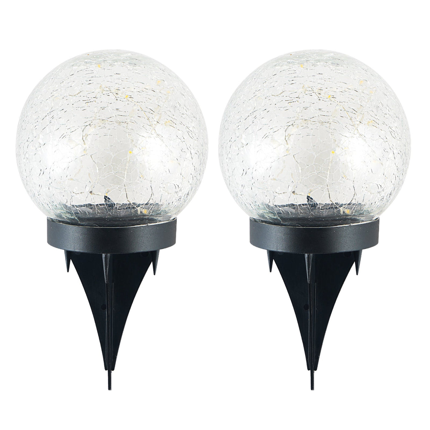 2Pcs Solar Lights Outdoor Garden Decor Cracked Glass Ball Warm Lights